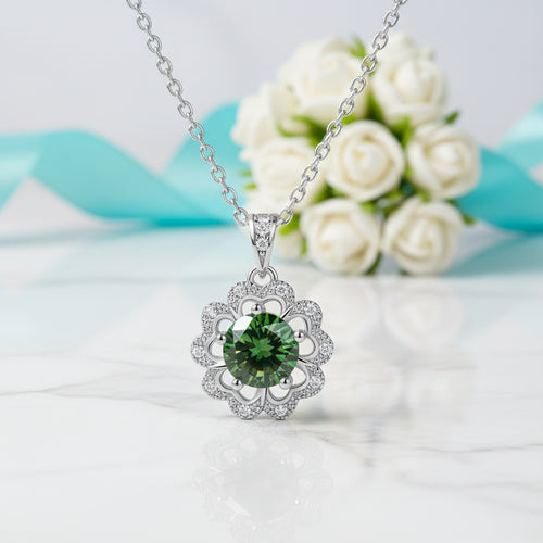 Adorn yourself with the vibrant, life-affirming energy of our 1.0 Ct Emerald Birthstone Flower Shaped Necklace. Wearing an emerald is like stepping into a fresh dawn, inviting serenity, prosperity, and the boundless potential of new beginnings. Let this timeless gem be your personal talisman, illuminating your path with optimism and radiant grace.