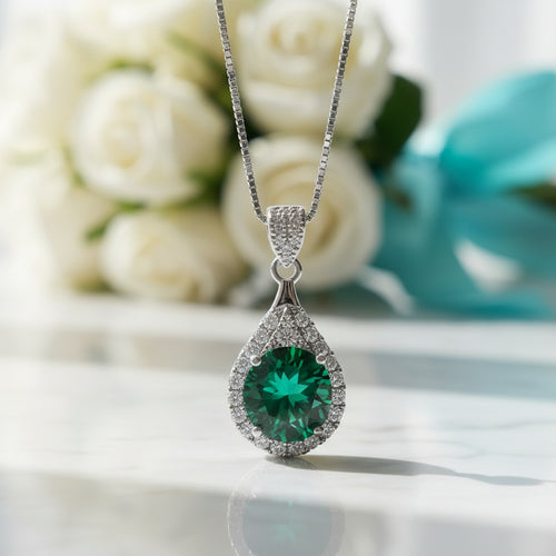 Adorn yourself with the vibrant, life-affirming energy of our 1.0 Ct Emerald Birthstone Round Cut Pendant Necklace. Wearing an emerald is like stepping into a fresh dawn, inviting serenity, prosperity, and the boundless potential of new beginnings. Let this timeless gem be your personal talisman, illuminating your path with optimism and radiant grace.