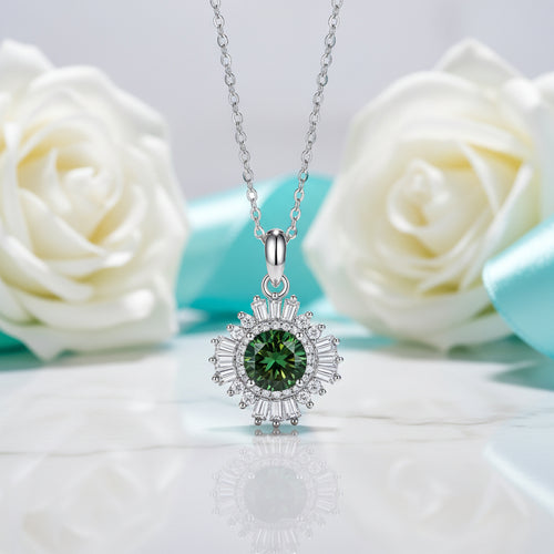 Adorn yourself with the vibrant, life-affirming energy of our 1.0 Ct Emerald Birthstone Sunflower Pendant Necklace. Wearing an emerald is like stepping into a fresh dawn, inviting serenity, prosperity, and the boundless potential of new beginnings. Let this timeless gem be your personal talisman, illuminating your path with optimism and radiant grace.
