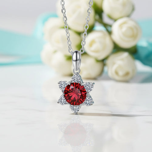 Embody the strength and passion of a new year with our Garnet jewelry. This 1.0 Ct Round Cut Snowflake Garnet Pendant Necklace is the perfect powerful and meaningful gift. Symbolizing courage and trust, the Garnet's rich, deep red hue resembles the seeds of a pomegranate and is deeply associated with passion and commitment.