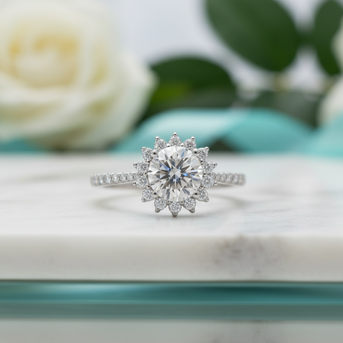 1.0 Ct Round Diamond Option Sunflower Engagement Ring