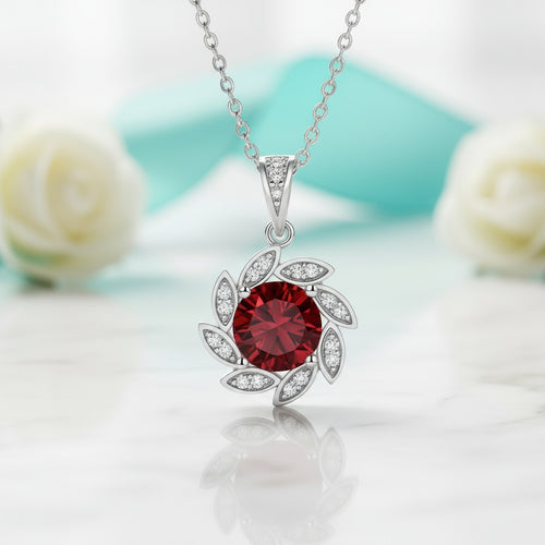 Ignite your passion with our stunning 1.0 Ct Ruby Flower Pendant Necklace. The Ruby is the highly coveted, fiery red variety of the mineral corundum, known as the "King of Gems." Its intense color, caused by chromium, is traditionally believed to bring good fortune, inspire confidence, and protect its wearer.