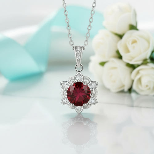 Ignite your passion with our stunning 1.0 Ct Ruby Snowflake Pendant Necklace. The Ruby is the highly coveted, fiery red variety of the mineral corundum, known as the "King of Gems." Its intense color, caused by chromium, is traditionally believed to bring good fortune, inspire confidence, and protect its wearer.