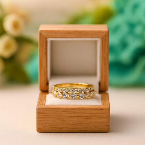 2 pcs Women's Stackable Yellow Gold Diamond Wedding Band Set
