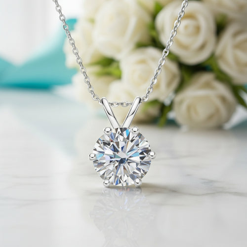 Celebrate everlasting love and resilience with our timeless 5.0 Ct Round Diamond Pendant Necklace. The Diamond is the ultimate symbol of purity, strength, and lasting commitment. This brilliant and enduring gem is the perfect expression of your most cherished connections and inner resilience.