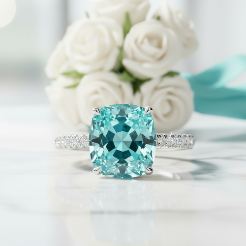 5.0 Ct Turquoise Cushion Cut Classic Engagement Ring