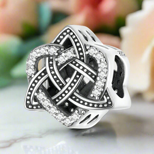 Discover timeless elegance with the Celtic Knot Heart-Shaped Vintage Charm from Evani Naomi Jewelry. Made of 925 Sterling Silver with sparkling created diamonds, its oxidized finish adds a vintage touch. The intricate Celtic knot symbolizes lasting love and family bonds, making this charm a meaningful and stylish addition to your collection.