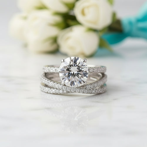 Classic 4 Prong Round Cut 2.0ct Diamond Bridal Set