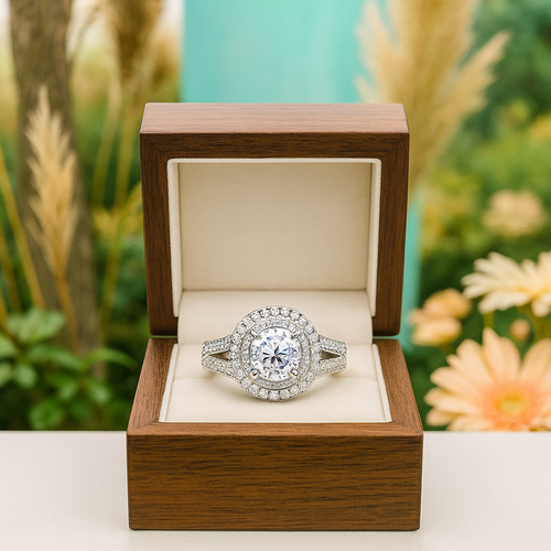 Round 1.25 ct Diamond Double-Halo Birthstone Engagement Ring