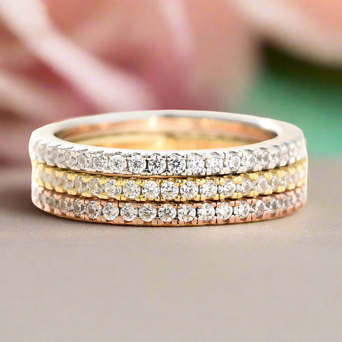 Three Pieces Full Eternity Stackable Wedding Band Set