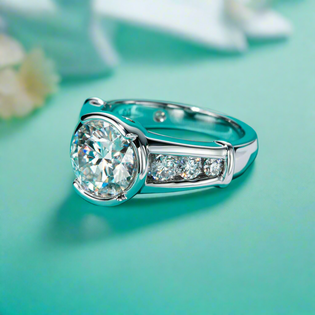 Round Cut 3.0 Ct Moissanite Engagement Ring