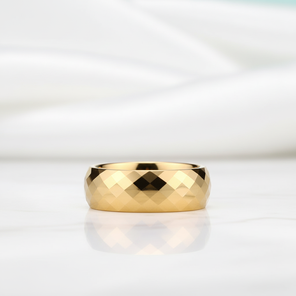 Domed Yellow Gold Rhombus Tungsten Men's Wedding Band