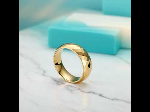 Experience elegance and style with our Domed Yellow Gold Rhombus Tungsten Men's Wedding Band from Evani Jewelry. Mesmerize with its rhombus pattern and sleek 7mm width, handcrafted with premium materials. Dipped five times in 18k yellow gold for a durable, flawless finish, this affordable yet quality piece symbolizes enduring love.