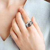 This stunning ring is crafted with 925 sterling silver and features a beautiful black spinel/created diamond gemstone. The prong setting adds a touch of elegance, while the 925 metal stamp ensures quality. Additionally, the side stones are made of high-quality material for a total item weight of 4.24 g.