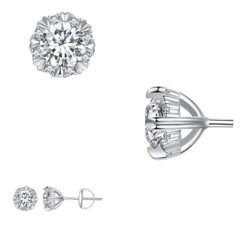 0.5 Ct Diamond Eight Heart Claws Stud Earrings