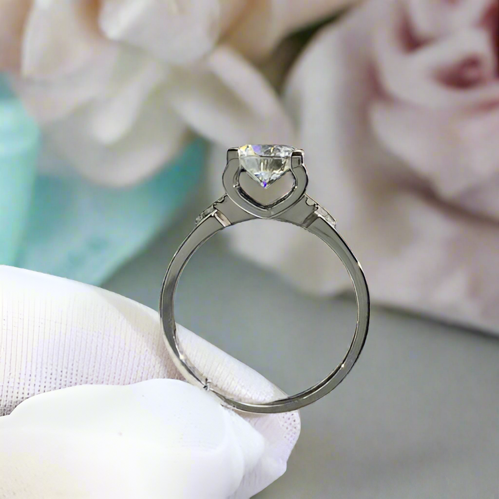 1.0 Carat Round Cut Moissanite Engagement Ring