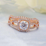 1.0 Ct Cushion Cut Moissanite 18k Rose Gold Halo Engagement Ring