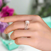 1.0 Ct Cushion Cut Diamond 18k Rose Gold Halo Engagement Ring