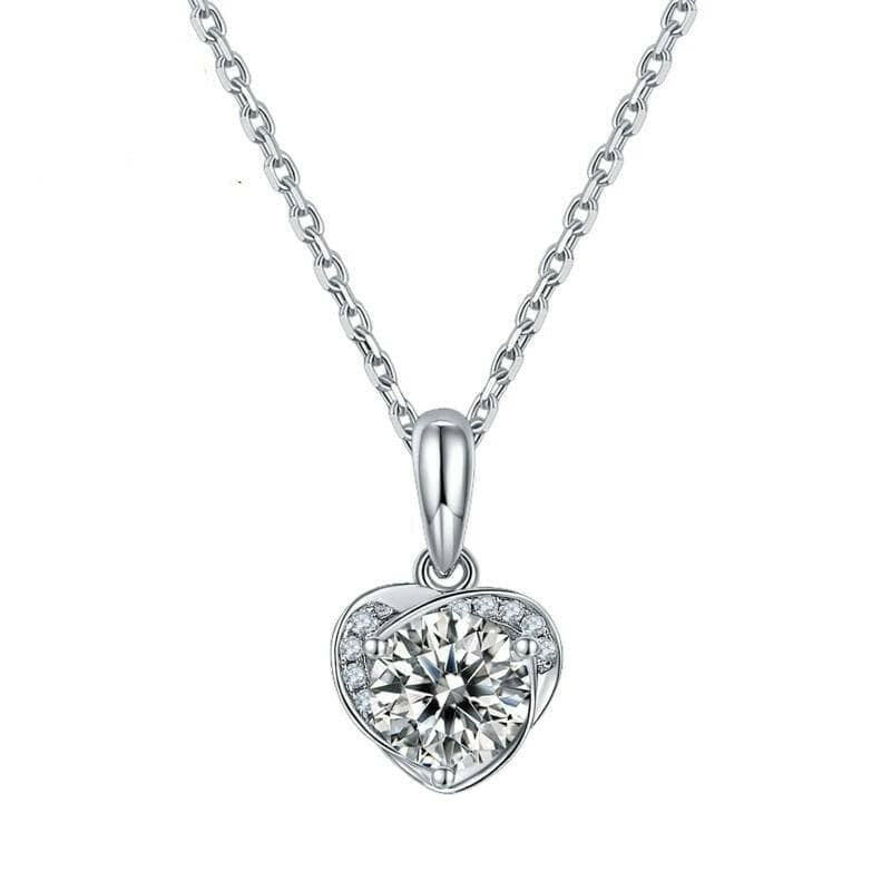 Upgrade your style with this 1.0 Ct Certified Moissanite Heart Pendant Necklace. Crafted from sterling silver and coated in 18k white gold, it features a brilliant round-cut moissanite that rivals a diamond’s sparkle. Ethically sourced and hypoallergenic, this timeless piece combines elegance with lasting quality.