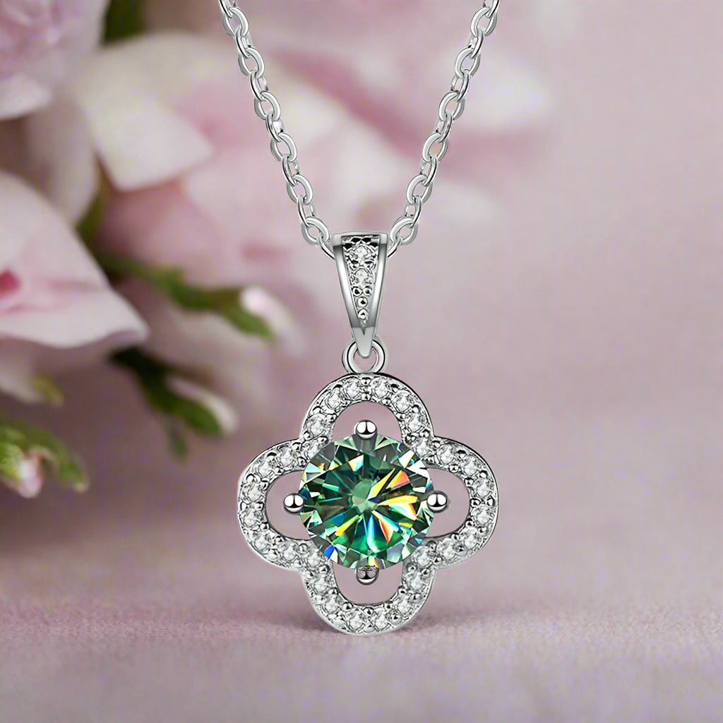 1.0 Ct Diamond Clover Peridot Birthstone Pendant Necklace