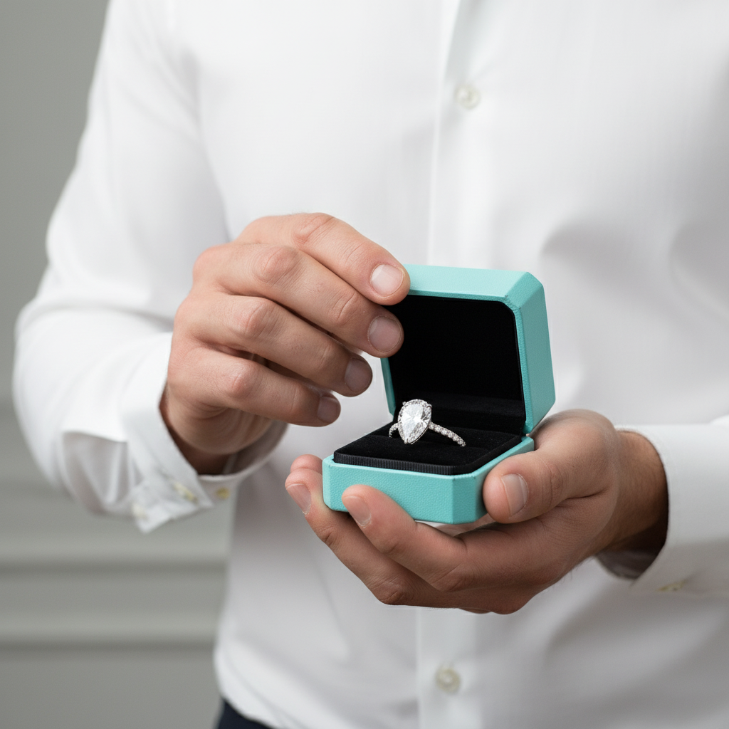 A stunning 4 carat pear cut diamond engagement ring, handcrafted with ethically sourced materials. Built to last a lifetime with timeless elegance and exceptional brilliance.