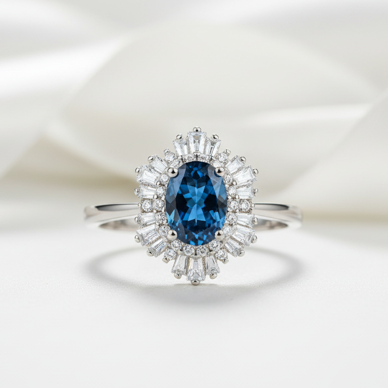 A relative newcomer to the gem world, Tanzanite is celebrated for its exceptional pleochroism—the ability to display different colors (blue, violet, and sometimes burgundy) depending on the angle. This captivating gem is found only at the foothills of Mount Kilimanjaro. Its mesmerizing, electric violet-blue hue offers modern elegance and sophisticated sparkle, perfectly showcased in the exquisite Vintage Oval-cut Tanzanite Birthstone Jewelry Set.