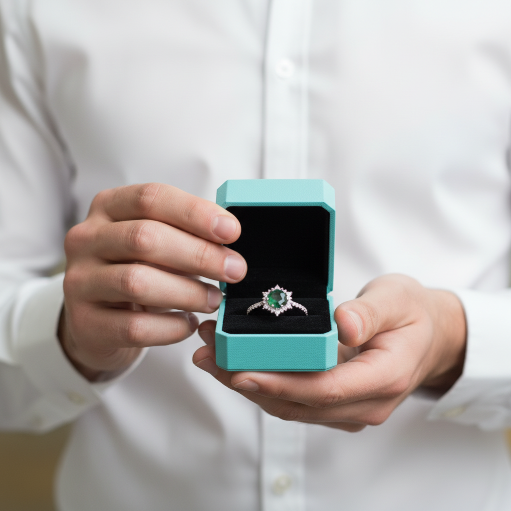 He saw their love story in a moss agate: the verdant greens of the forest where they met, the soft, hazy light of a morning spent in each other's arms. He captured that world in a sterling silver ring, a tiny, magical universe holding their secret paradise. It's a whispered fairy-tale she can wear, a promise of a love as unique and beautiful as the stone itself.