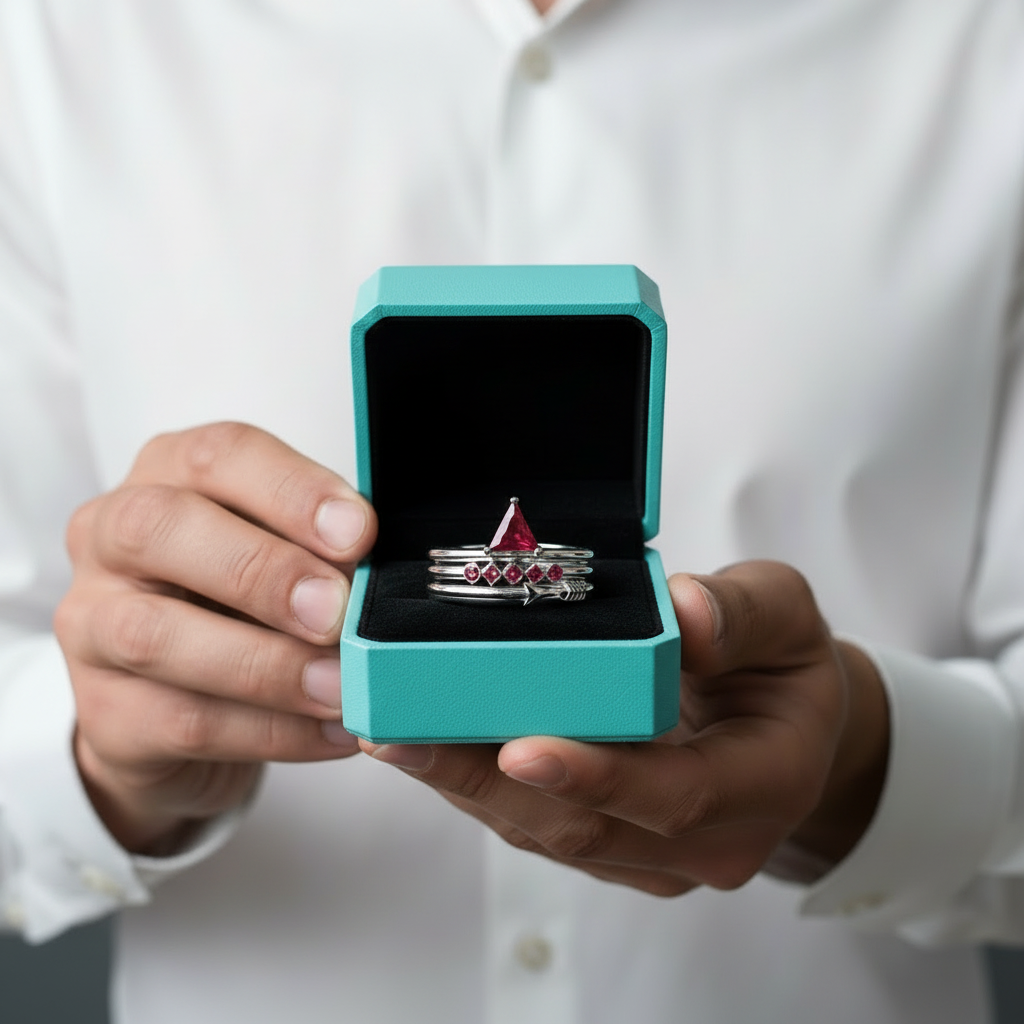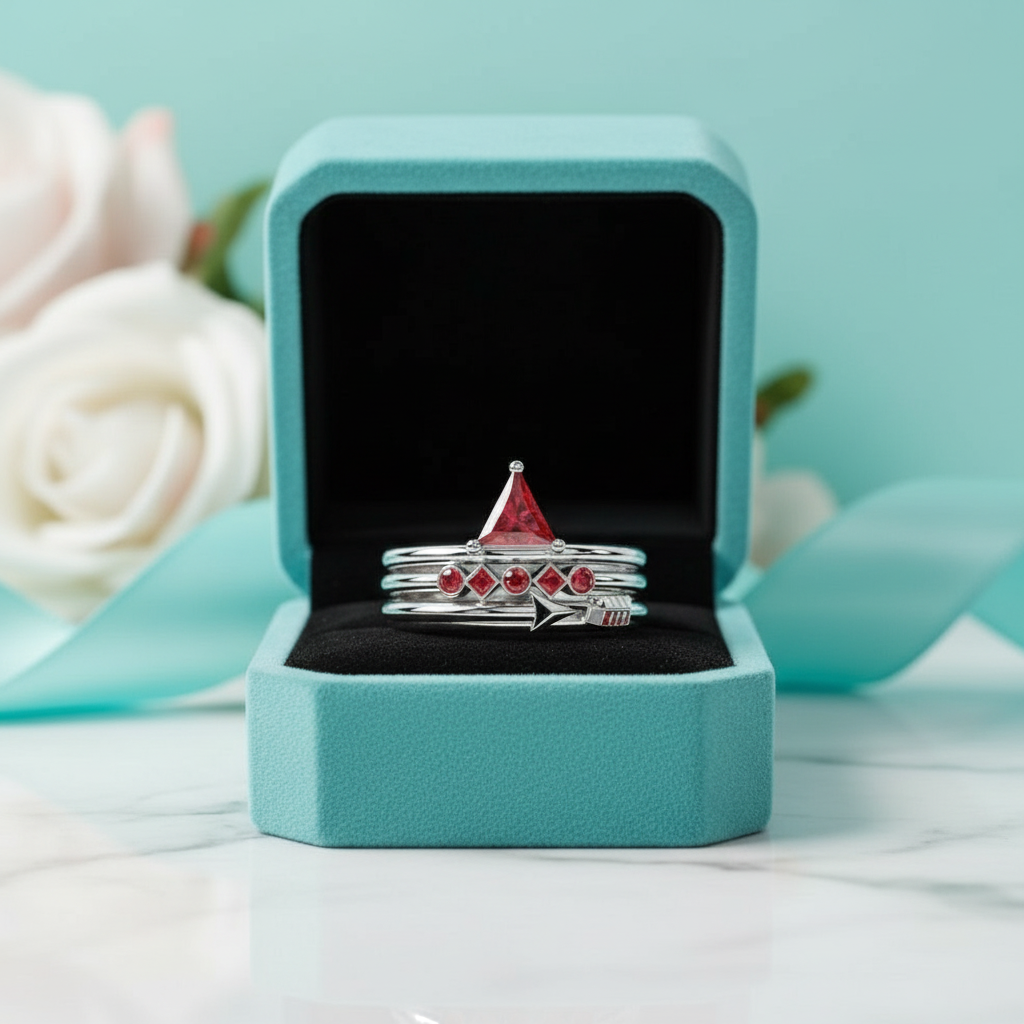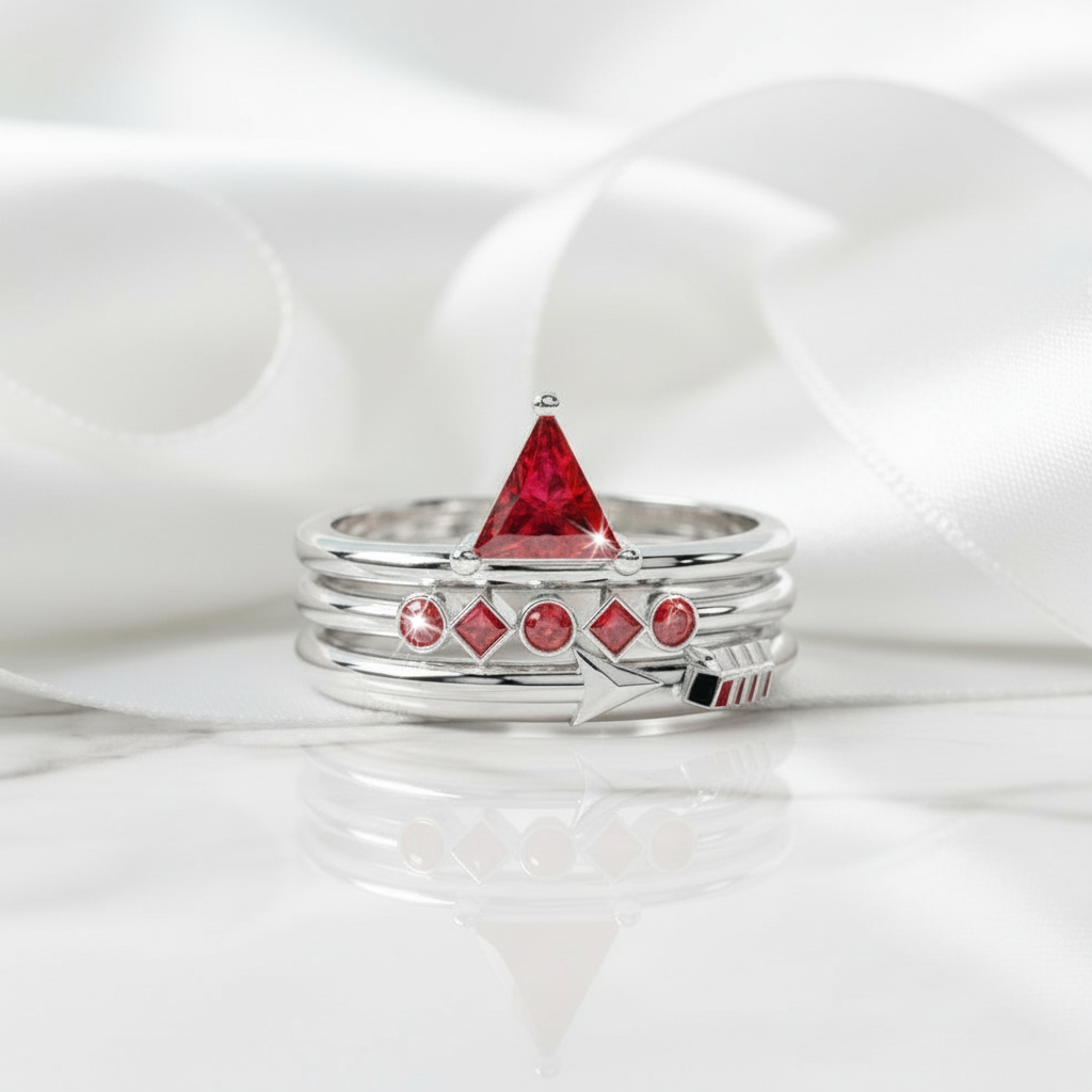 Ignite your passion with our stunning Ruby Birthstone Wedding Ring Set in 14k Yellow Gold. The Ruby is the highly coveted, fiery red variety of the mineral corundum, known as the "King of Gems." Its intense color, caused by chromium, is traditionally believed to bring good fortune, inspire confidence, and protect its wearer.