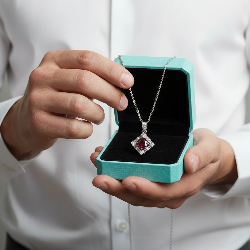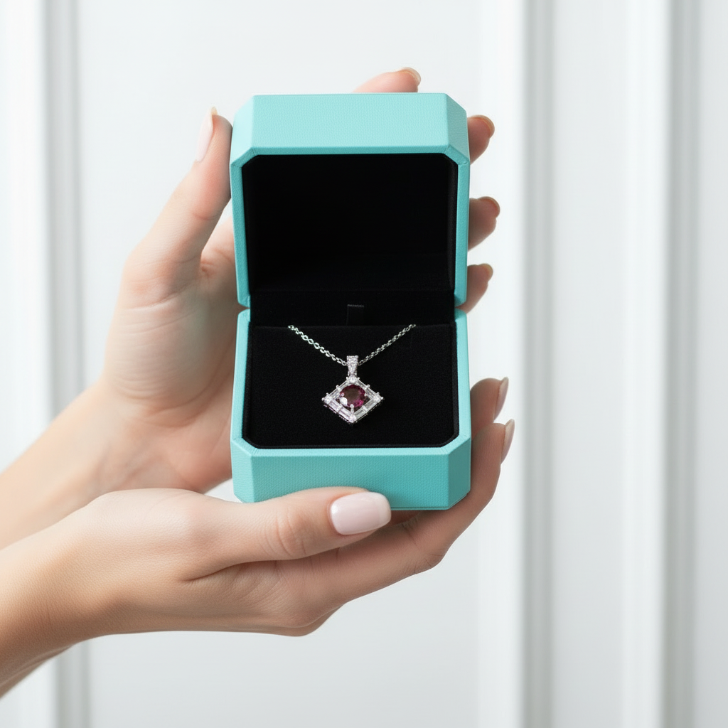 Ignite your passion with our stunning 1.0 Ct Round Cut Ruby Birthstone Necklace. The Ruby is the highly coveted, fiery red variety of the mineral corundum, known as the "King of Gems." Its intense color, caused by chromium, is traditionally believed to bring good fortune, inspire confidence, and protect its wearer.