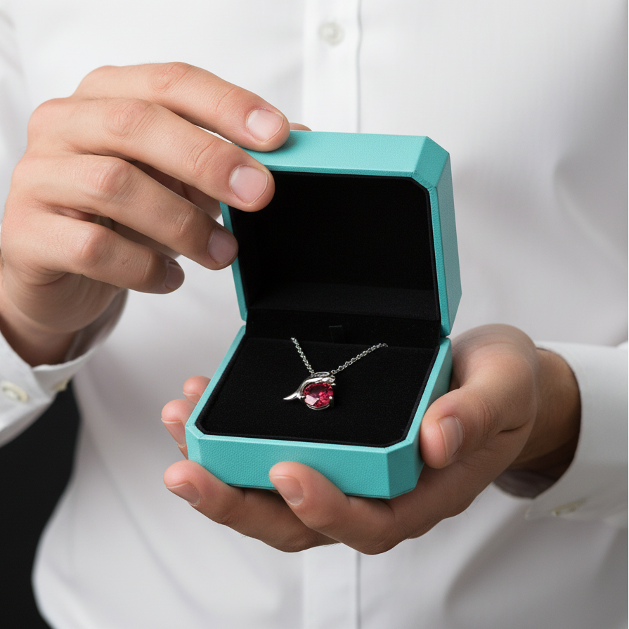 Ignite your passion with our stunning 1.0 Ct Round Cut Ruby Dolphin Pendant Necklace. The Ruby is the highly coveted, fiery red variety of the mineral corundum, known as the "King of Gems." Its intense color, caused by chromium, is traditionally believed to bring good fortune, inspire confidence, and protect its wearer.