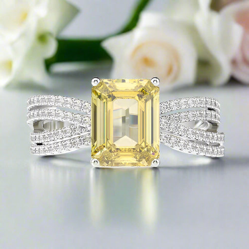 A stunning 3.0 carat emerald cut simulated topaz engagement ring set in white gold. This birthstone piece combines timeless elegance with exceptional sparkle, perfect for those seeking a sophisticated and distinctive look.