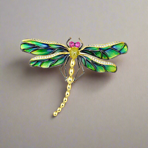 This exquisite dragonfly brooch showcases vibrant emerald enamel detailing, capturing the delicate grace of nature's most enchanting insect. As the traditional May birthstone, emerald symbolizes rebirth, hope, and love—qualities that infuse this piece with deeper meaning. Known for representing wisdom and success, emeralds have been treasured throughout history for their lush green hue and transformative energy. Whether worn as a personal talisman or a sophisticated accessory, this brooch brings an air of elegance and intention to any ensemble, celebrating new beginnings and positive transformation.