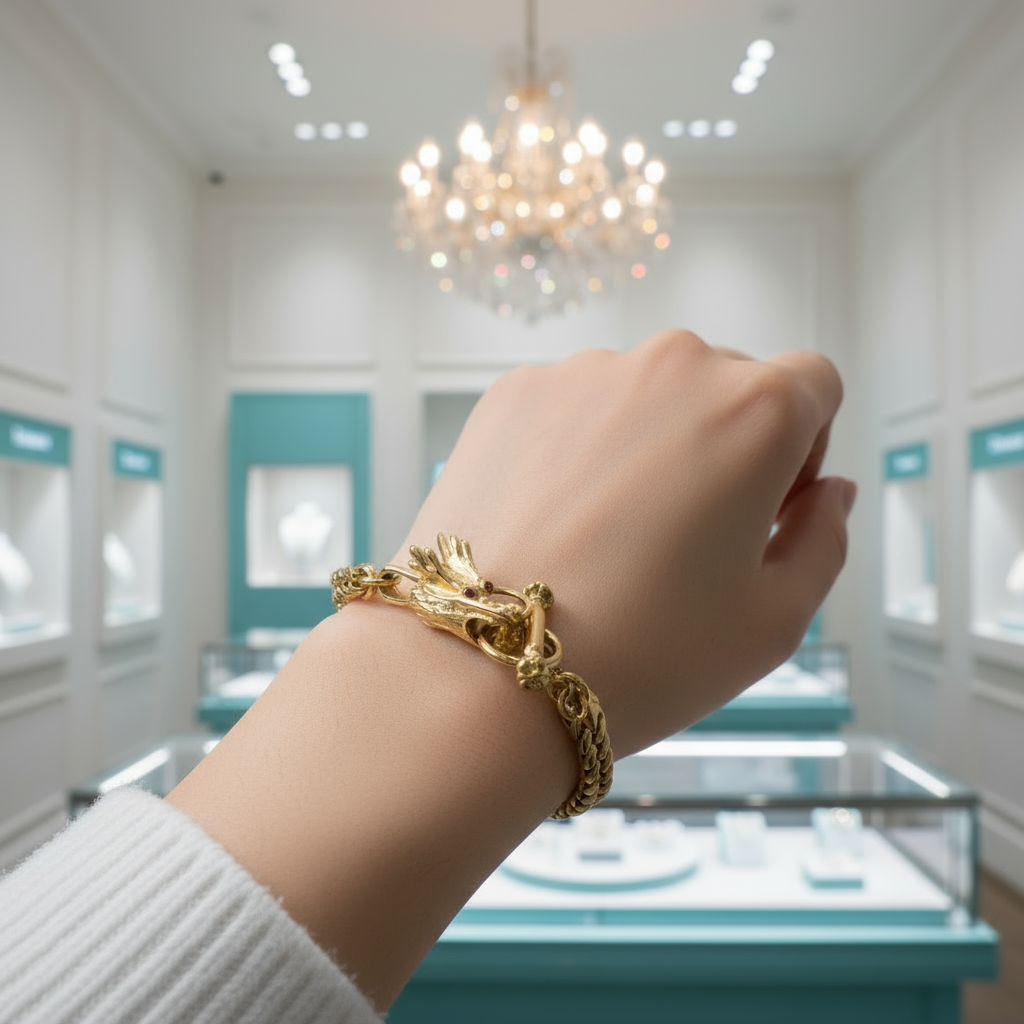 Sterling silver punk bracelet featuring bold animal designs—dragon, leopard, or tiger—with captivating red stone eyes and diamond accents. A striking statement piece that blends edgy aesthetics with refined craftsmanship.