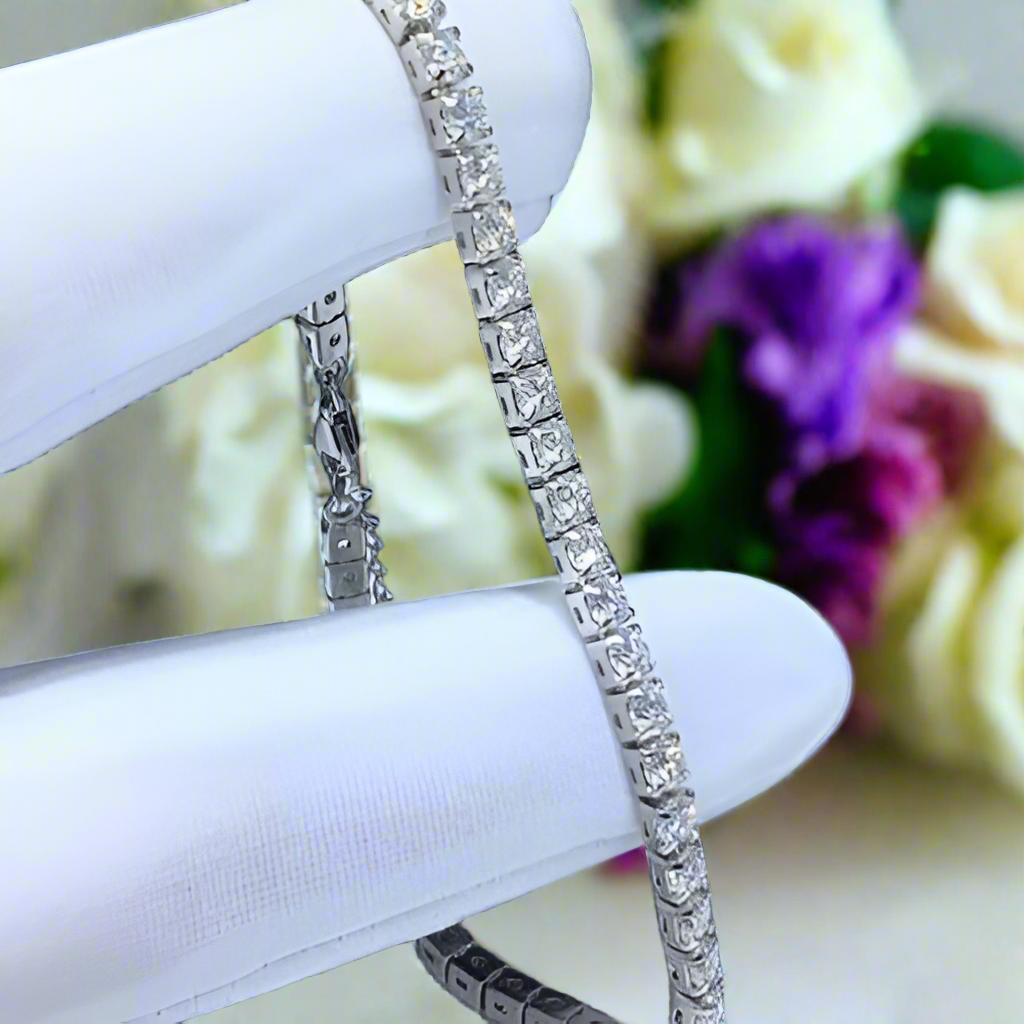 Experience the beauty of our 5.0 Ct Moissanite Chain Beads Bracelet from Evani Naomi Jewelry. Made with 92.5% pure silver and hypoallergenic metals dipped 5x in Platinum, this ethically sourced piece is both durable and stunning. With a sparkling appearance comparable to diamonds, this affordable bracelet is a true treasure that adds elegance to any outfit. Indulge in this timeless, cherished piece.
