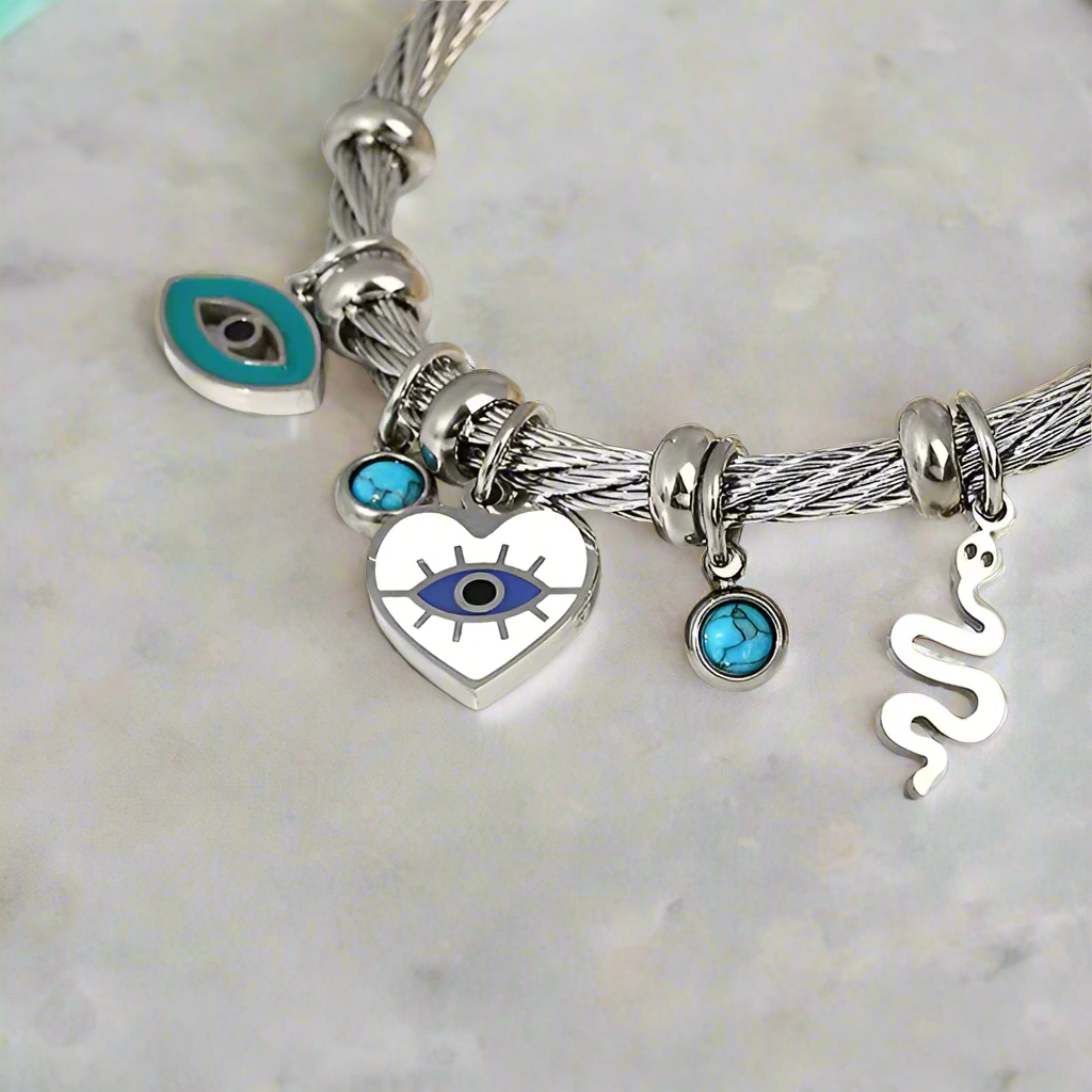 Enamel Snake Heart Evil Eye Stainless Steel Bracelet