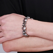 Crafted with durable stainless steel, this bracelet features a rolo Chain and a secure Lobster-claw clasp for a unique design. The striking Skeleton pattern is set in a tension setting, making it a must-have for any punk style.