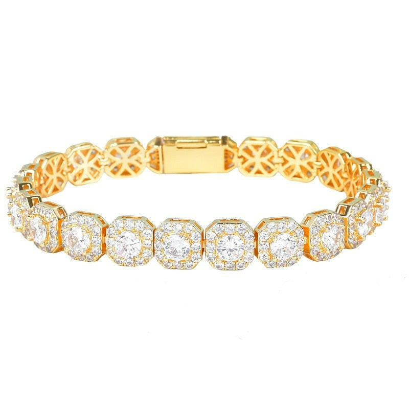 Upgrade your style with our Round Cut Moissanite Hip hop Bracelet from Evani Naomi Jewelry. This elegant piece features sparkly moissanite stones set in 92.5% pure silver, dipped in 18k gold. It offers exceptional value as it rivals natural diamonds in sparkle and brilliance, while ethically sourcing materials. Experience the exclusivity of our affordably luxurious beauty.