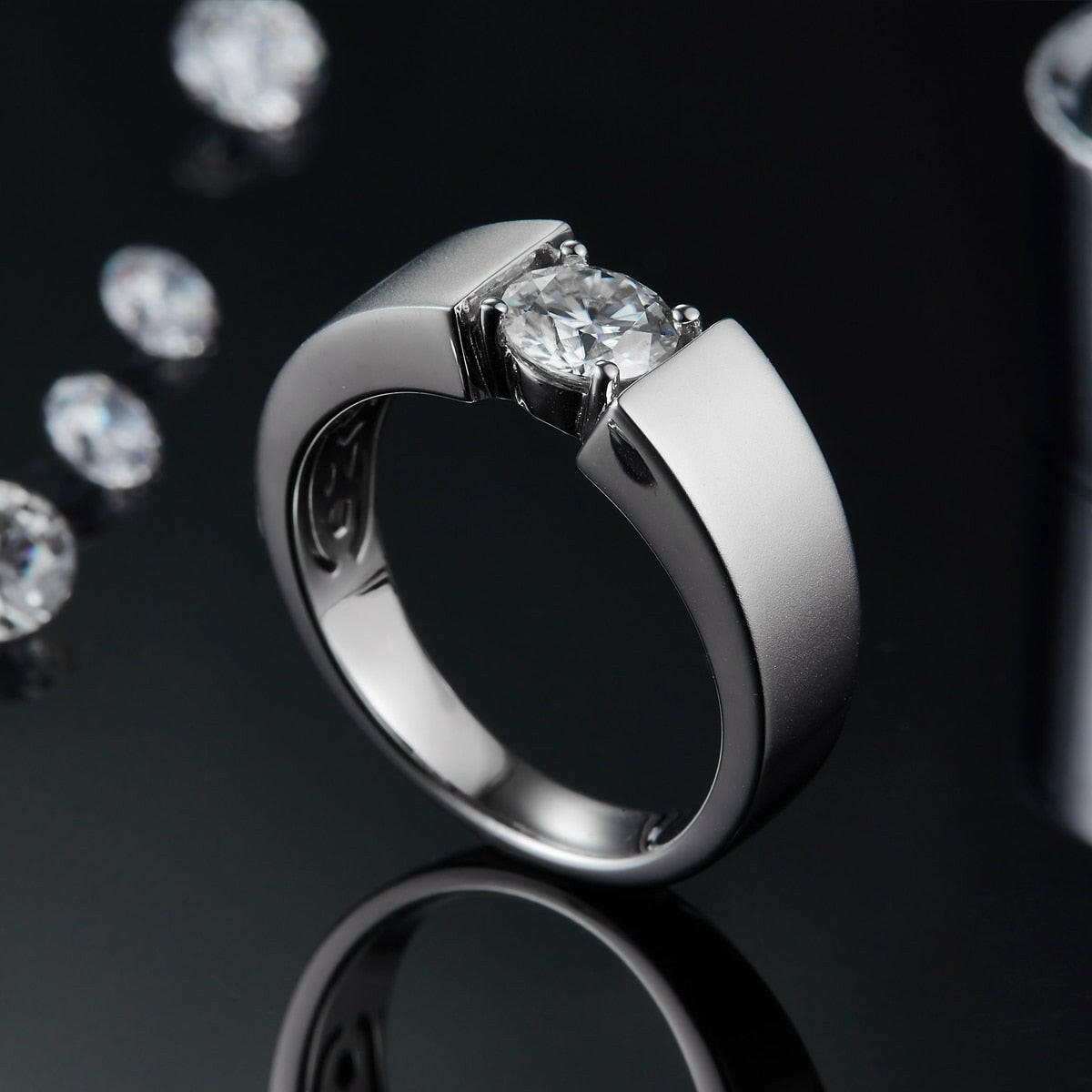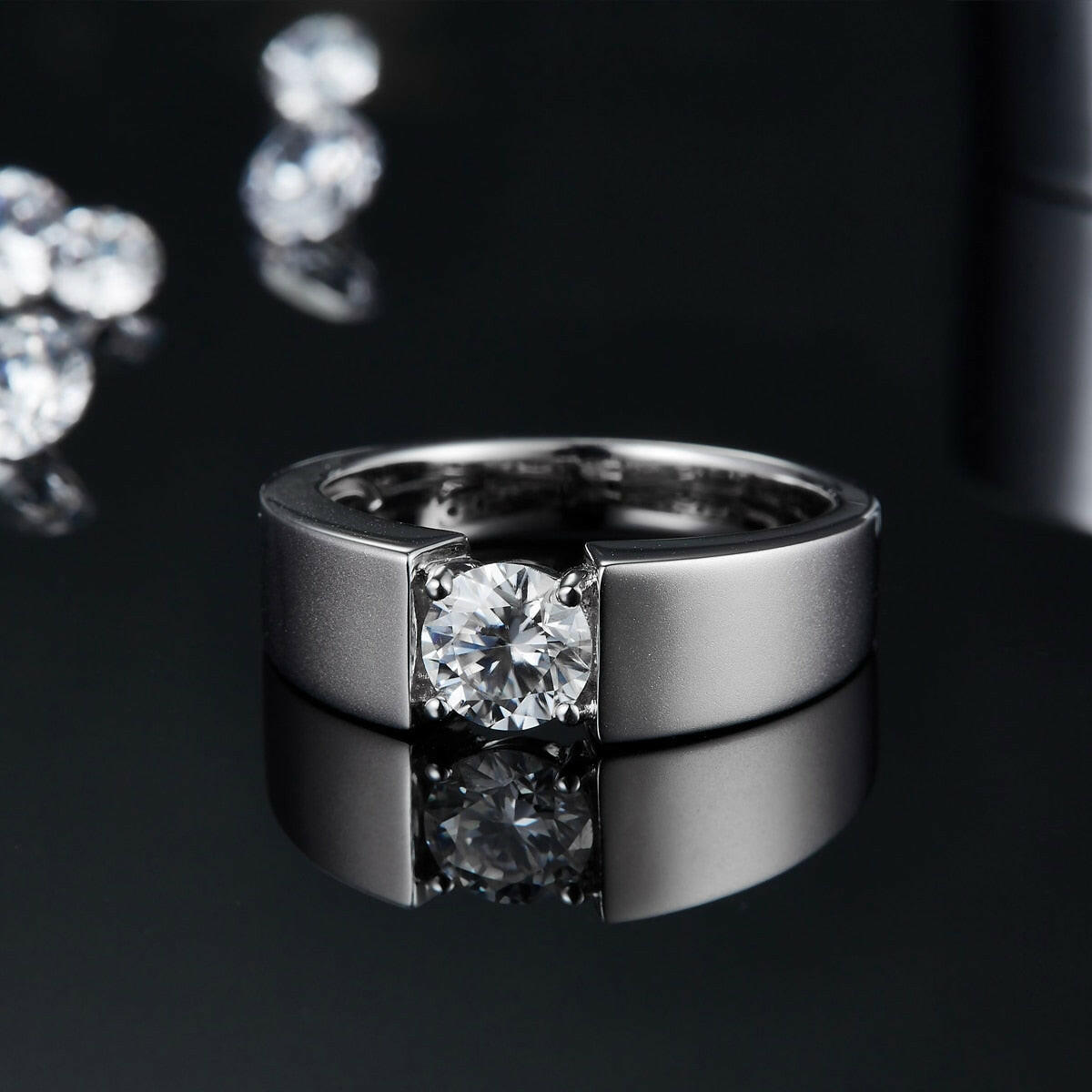 1.0 Ct Round Cut Moissanite Men's Solitaire Wedding Ring
