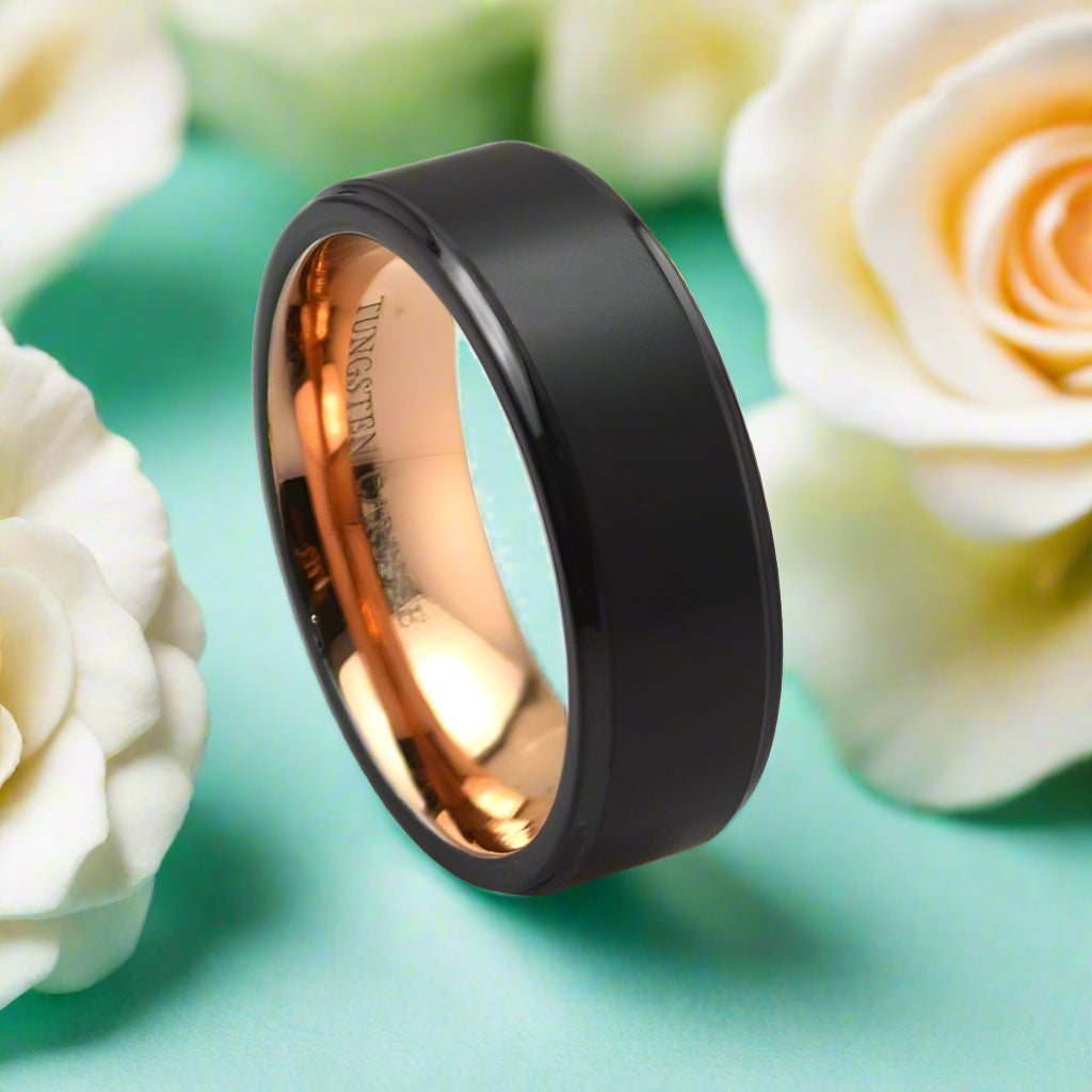 8mm Black & Rose Gold Tungsten Men's Wedding Band