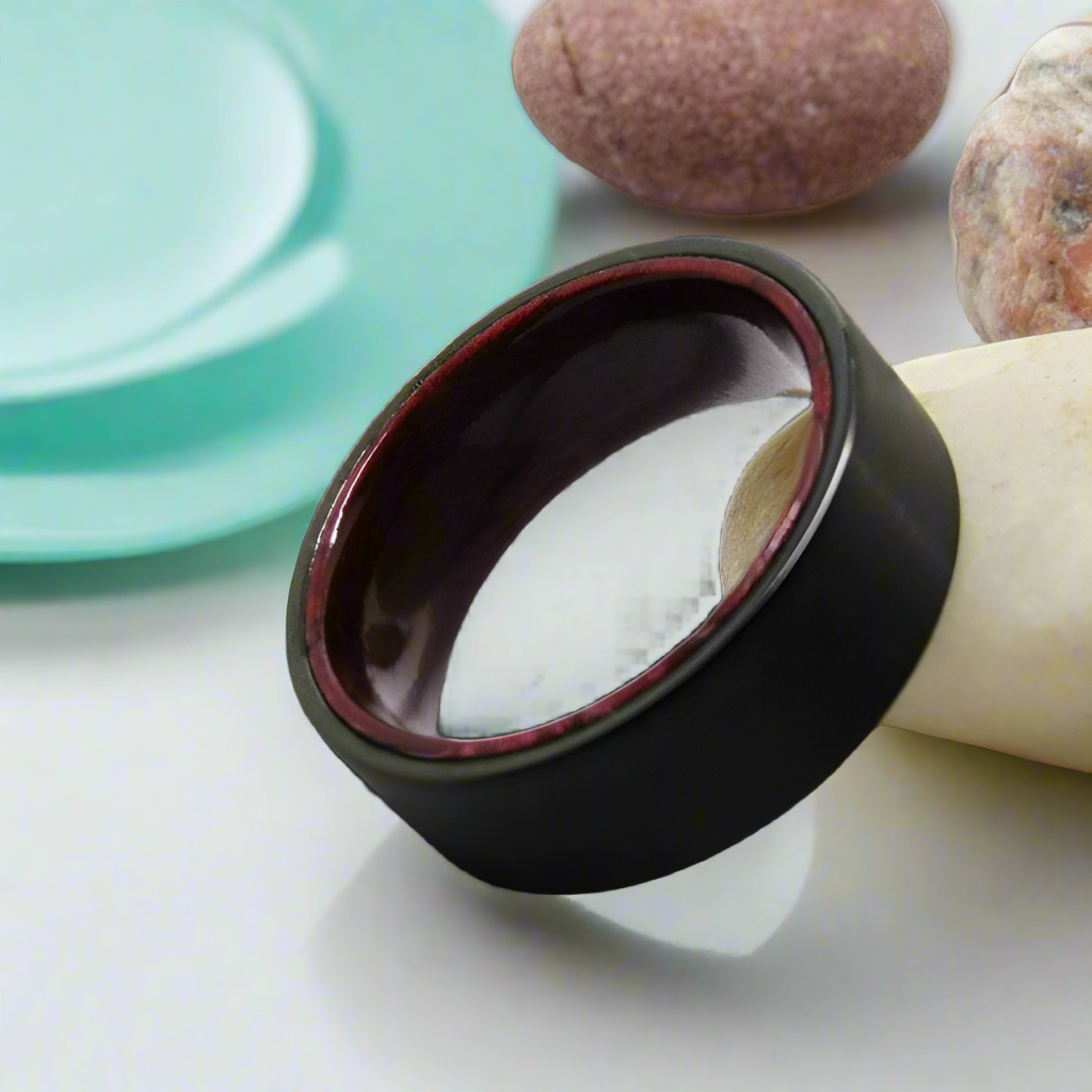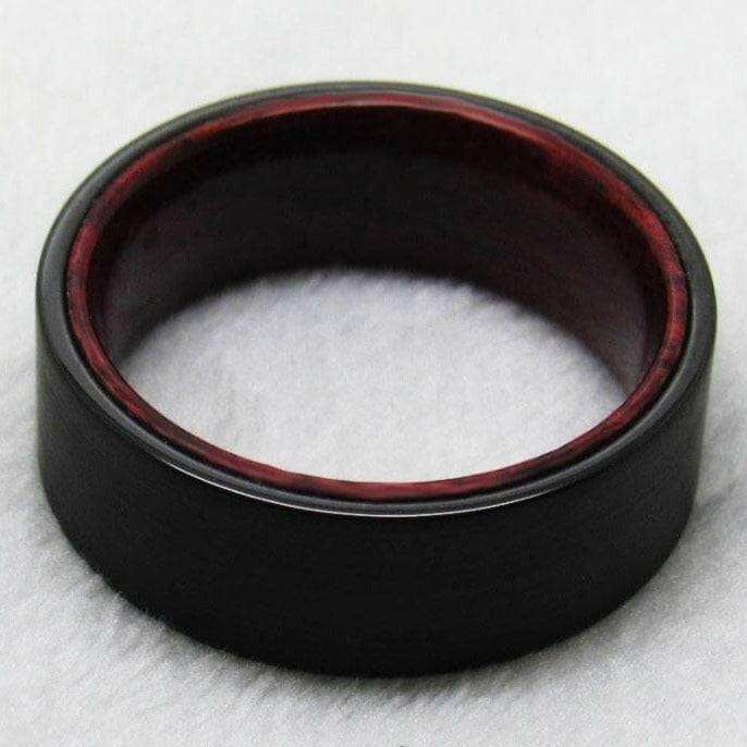 Black Flat Tungsten Men's Wedding Band with Inner Red Sandalwood