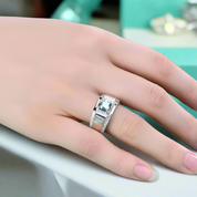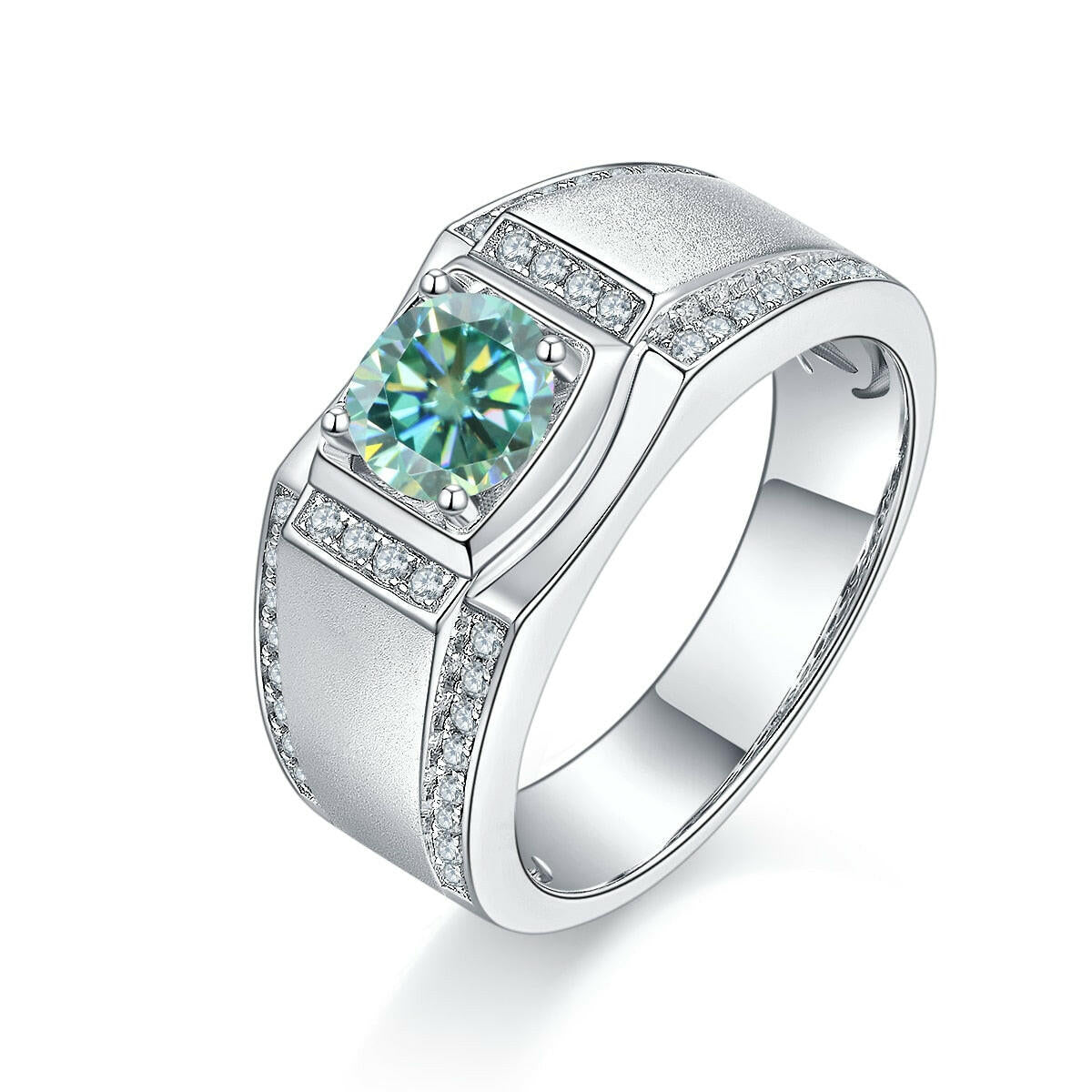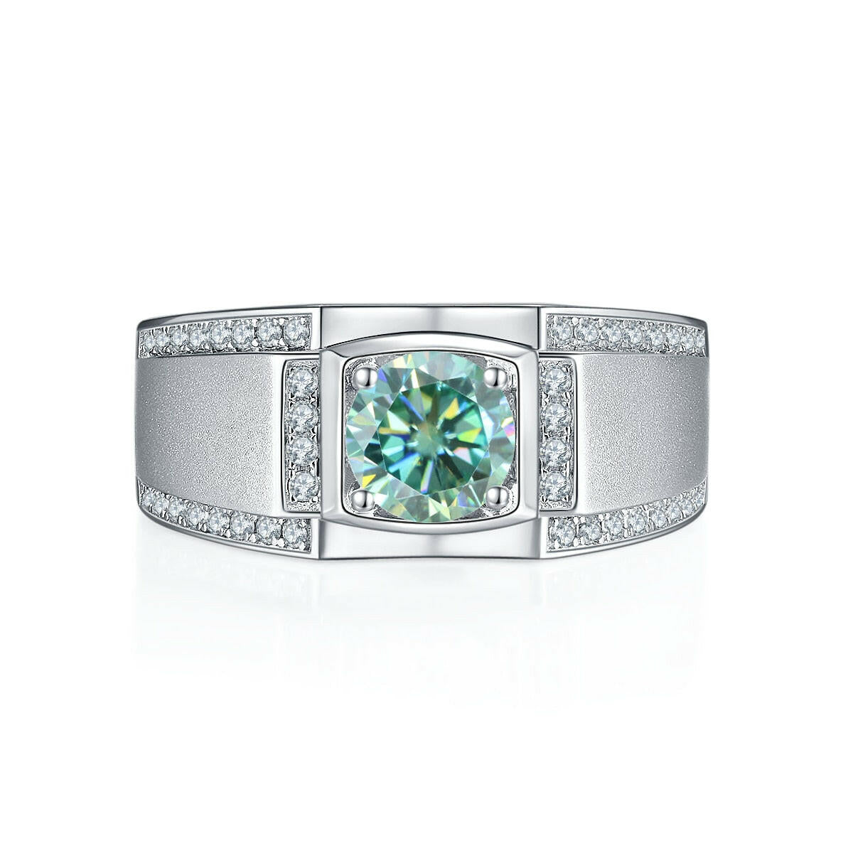 This men's ring features a timeless design crafted from sterling silver with an 18k white gold finish. It showcases brilliant, ethically sourced moissanite stones that shine like diamonds at a fraction of the cost. Durable and hypoallergenic, it offers a sophisticated, eco-friendly choice for lasting elegance.