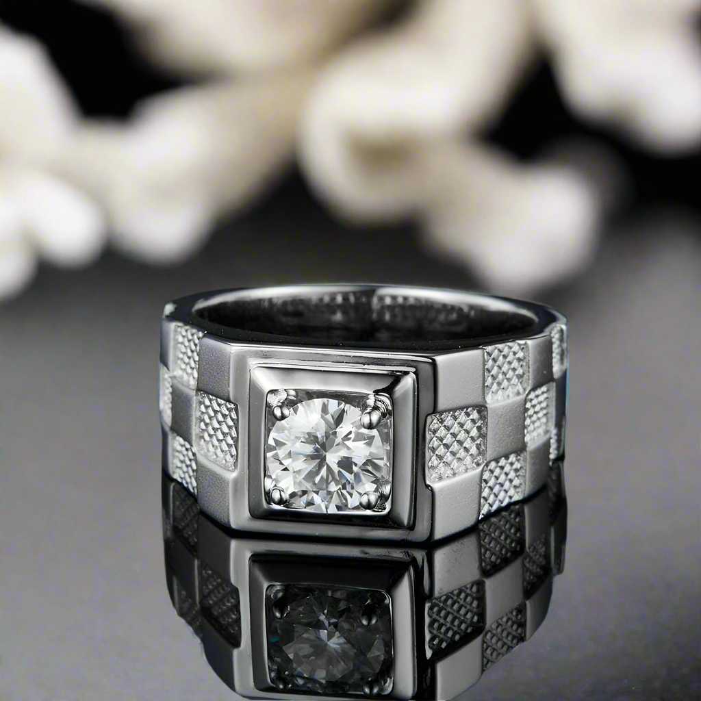 Dare to dazzle with brilliant diamonds in this fabulous 1.0 ct. silver men's ring. Crafted in durable silver dipped 5x in white gold. This beauty is handcrafted for daily wear.