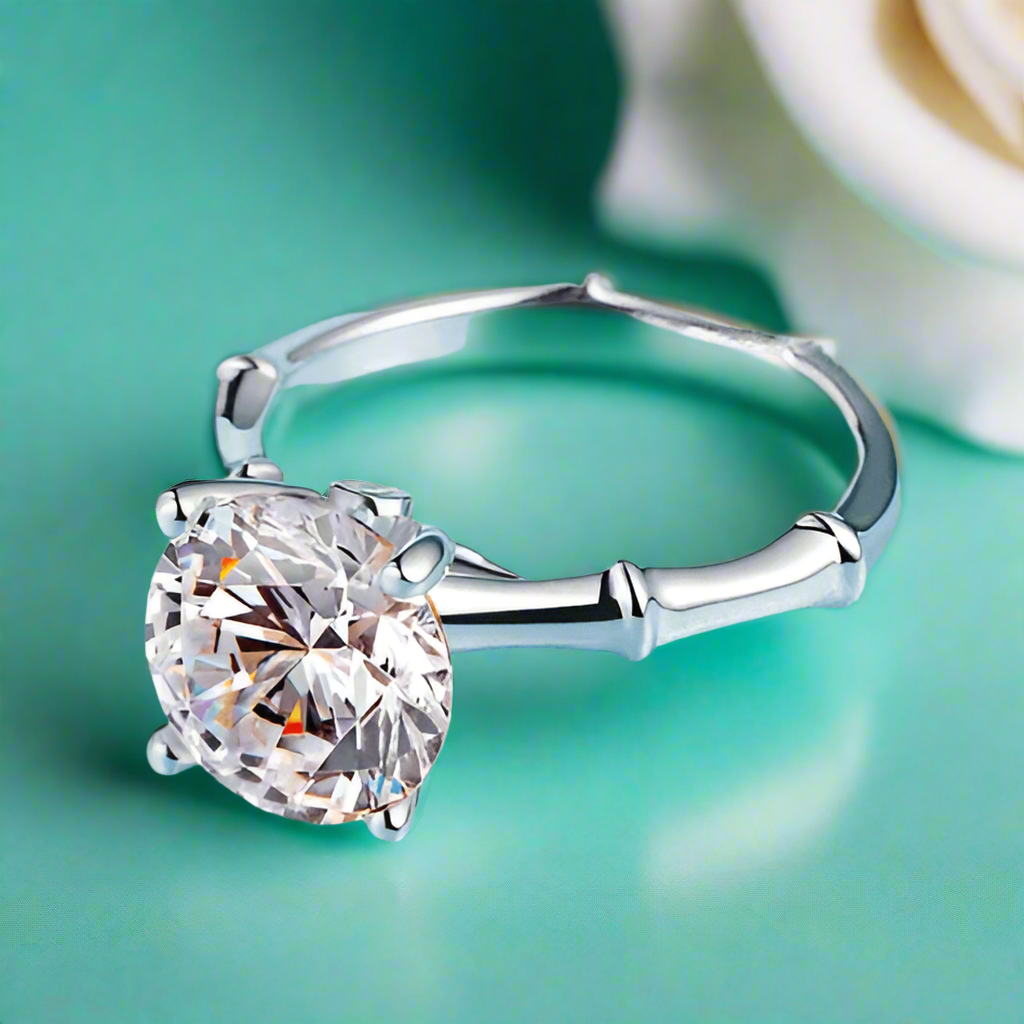 Upgrade your proposal with our 3.0 Ct Round Certified Moissanite Solitaire Engagement Ring. This ethically sourced masterpiece features a dazzling 3 carat round cut moissanite set in 92.5% pure silver with five-layer platinum plating. Handcrafted with precision, it offers diamond-like brilliance as an enduring symbol of your commitment.