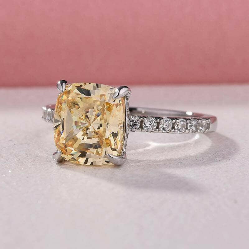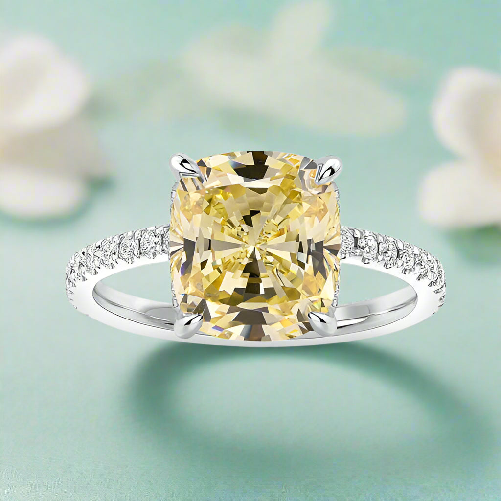 Cushion Cut 3.0 ct Yellow Sapphire Diamond Engagement Ring