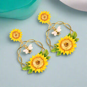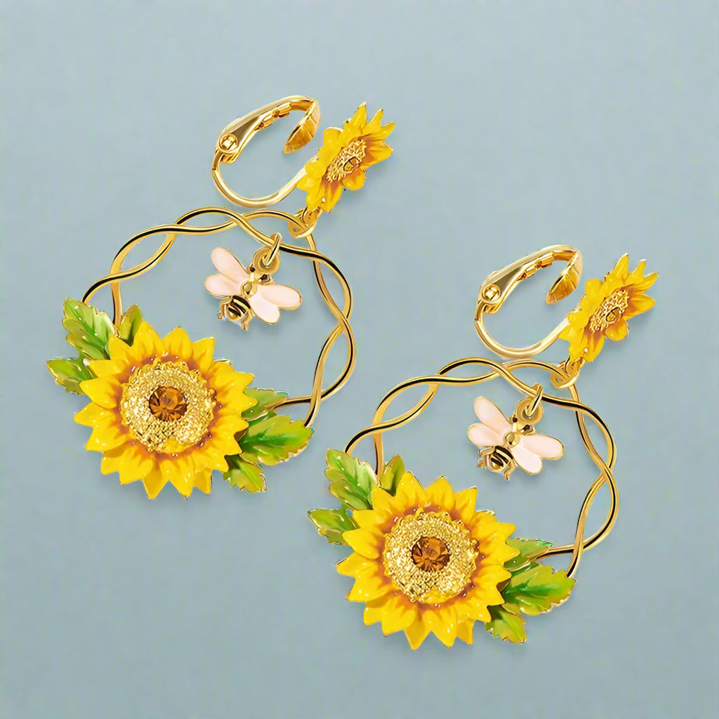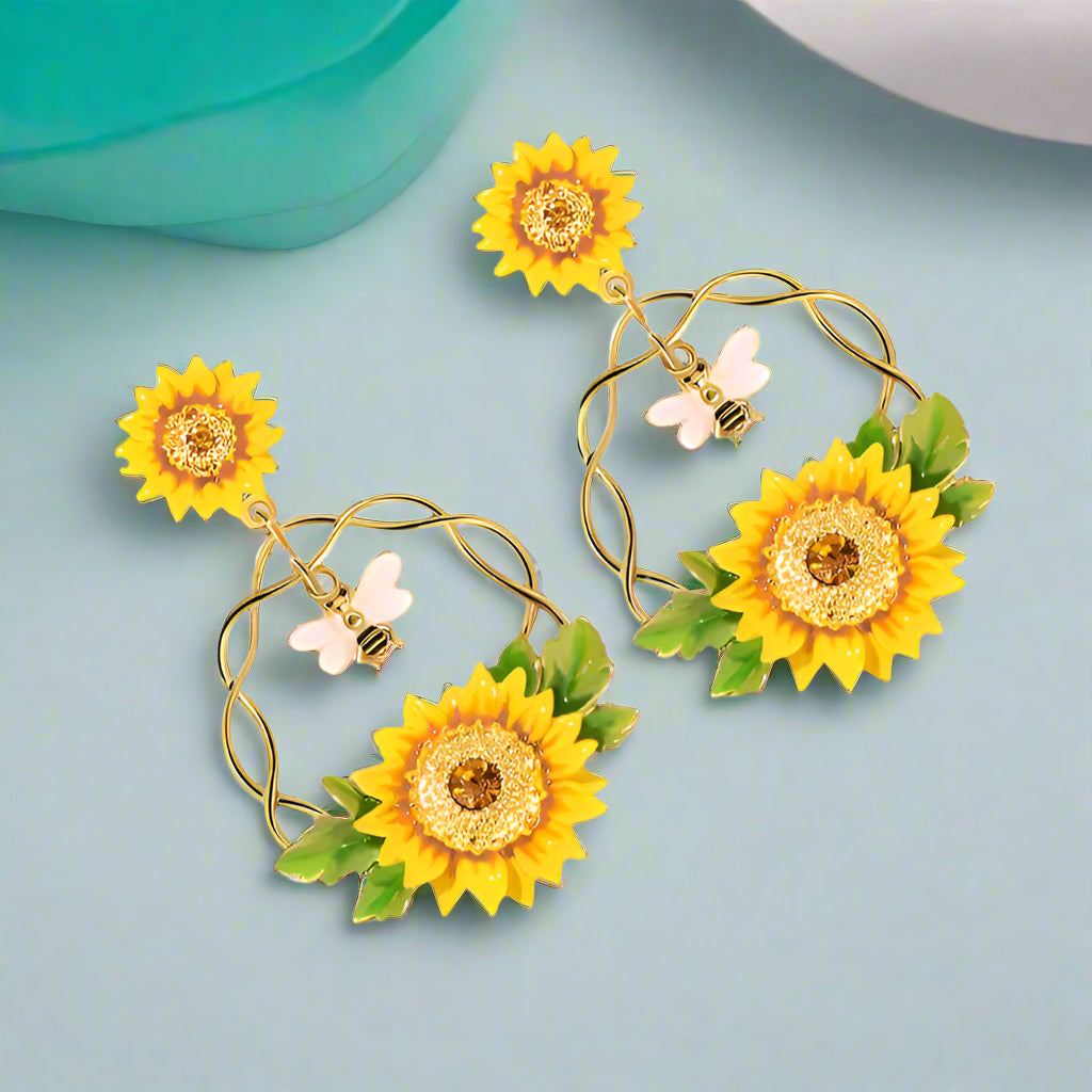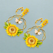 Enamel Diamond Bee and Sunflower Topaz Earrings