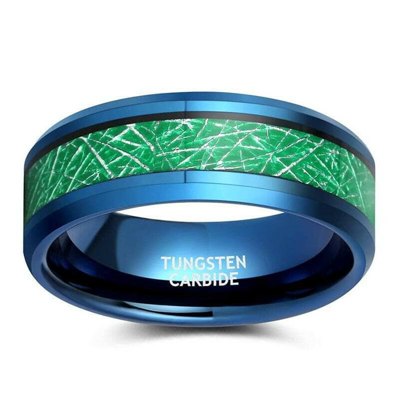 Beveled Edge Blue & Green Tungsten Men's Wedding Band