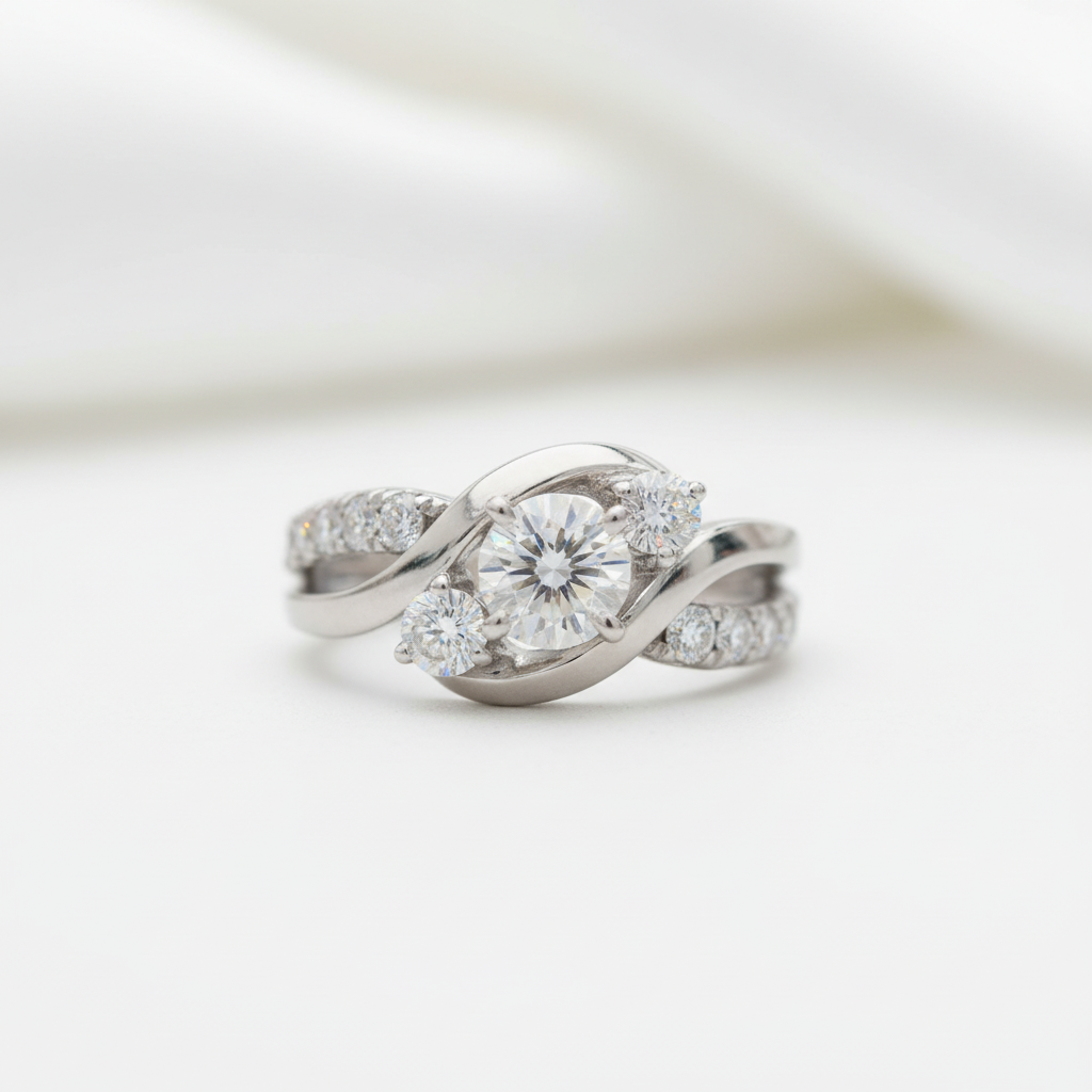 2.0 ct Round Cut Three Stone Diamond Option Twisted Engagement Ring