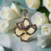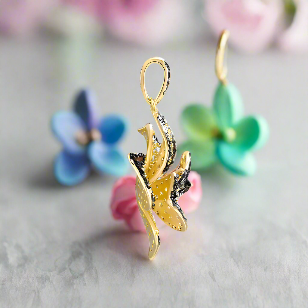 Unique Diamond Orchid Flower Topaz Gold Pendant