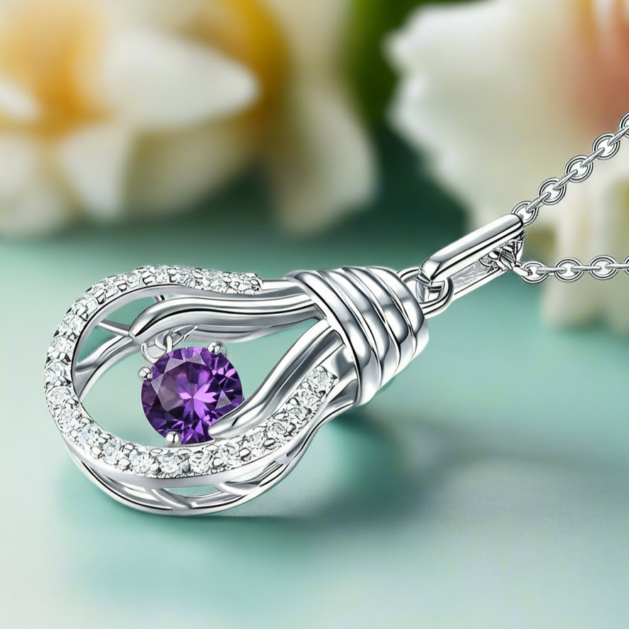 BIRTHSTONE MEANING: Amethyst represents royalty, hope, and passion. Historically, it was believed to promote a clear mind and enhance spiritual awareness.