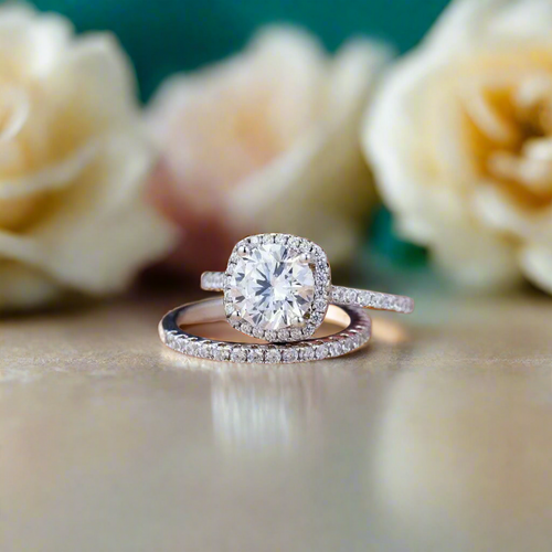 2.0 Ct Round Cut Moissanite Halo Bridal Ring Set